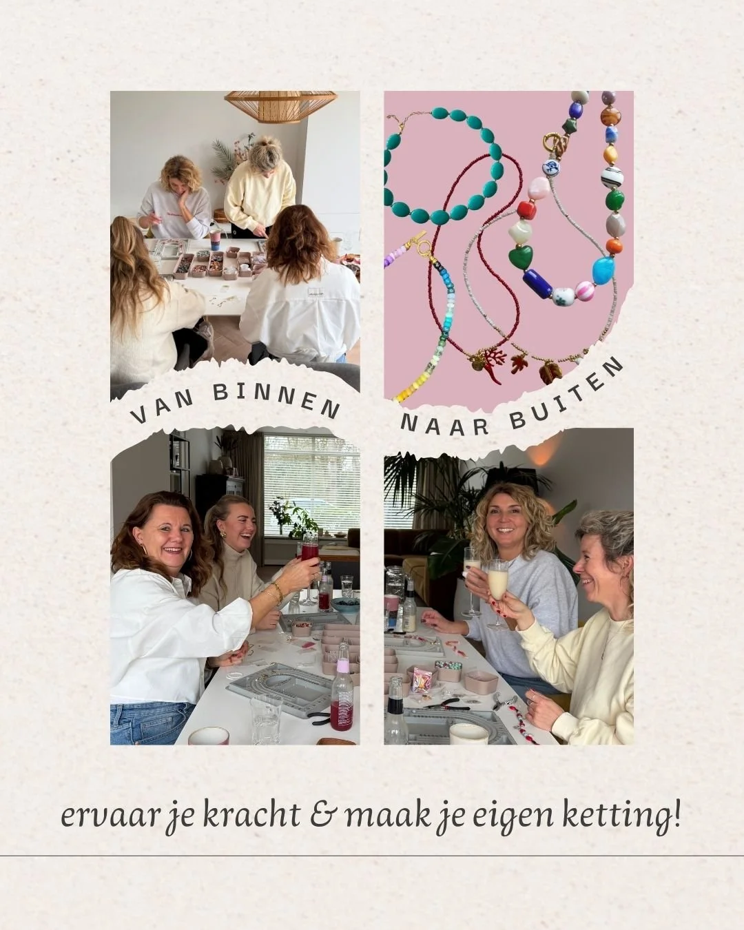 15.30u - 17.00u - Sieraad maken: naar eigen smaak, passend in krachtsymbolen en kleuren ontwerp je je eigen ketting of armband. Het aanbod in materialen is reuze en uiteraard begeleid ik je bij technische afwerking.